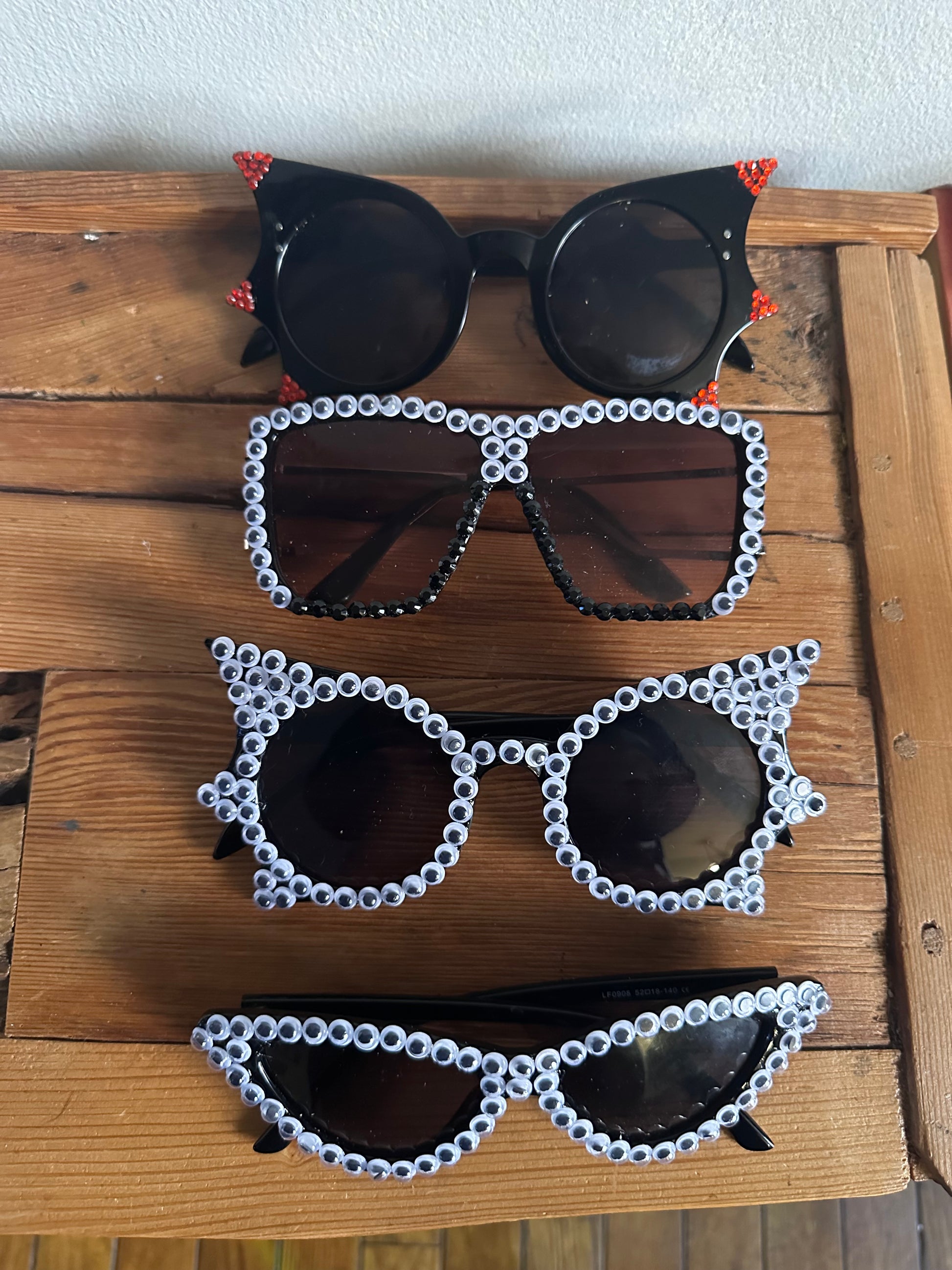 fun decorated sunglasses for all! Some are lighthearted and summertime fun + others are spooky eyeball covered ones.